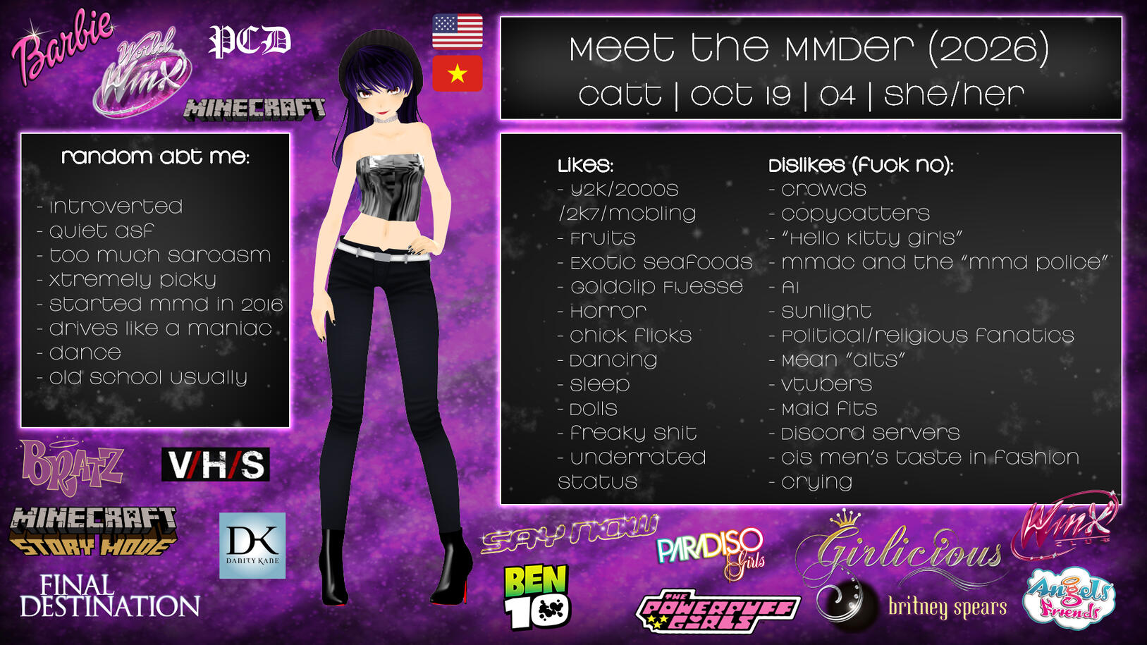 Catt | she/her | Oct 19 | MMD + Blender | √441 | mtd/viet/US | Mutant Enderman | Discord: _cattac